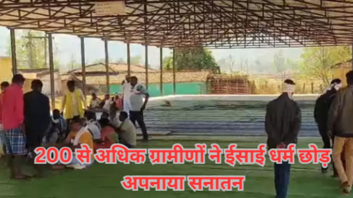 CG NEWS कांकेर — छत्तीसगढ़ के बस्तर संभाग अंतर्गत कांकेर जिले से एक बड़ी खबर सामने आ रही है। जिले के पीढापाल क्षेत्र में एक भव्य ‘घर वापसी’ कार्यक्रम का आयोजन किया गया, जिसमें 200 से अधिक ग्रामीणों ने ईसाई धर्म का त्याग कर अपने मूल सनातन धर्म में वापसी कर ली है। इस सामूहिक धर्मांतरण (वापसी) को क्षेत्र में हिंदू संगठनों की बड़ी सफलता के रूप में देखा जा रहा है।
