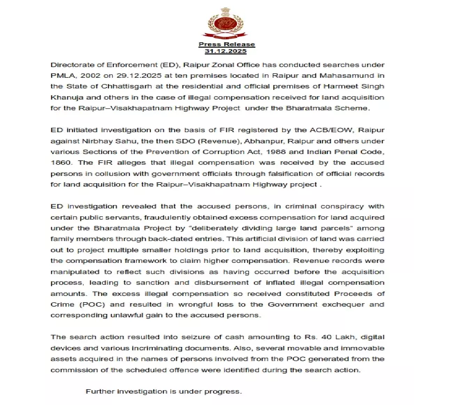 रायपुर: छत्तीसगढ़ राज्य प्रशासनिक विभाग (साप्रवि) ने राज्य के सभी अधिकारी-कर्मचारियों को आदेश जारी किया है कि वे इस वर्ष के लिए अपनी चल-अचल संपत्ति का विवरण 31 जनवरी 2026 तक एनआईसी के स्पैरो पोर्टल पर अपलोड करें।