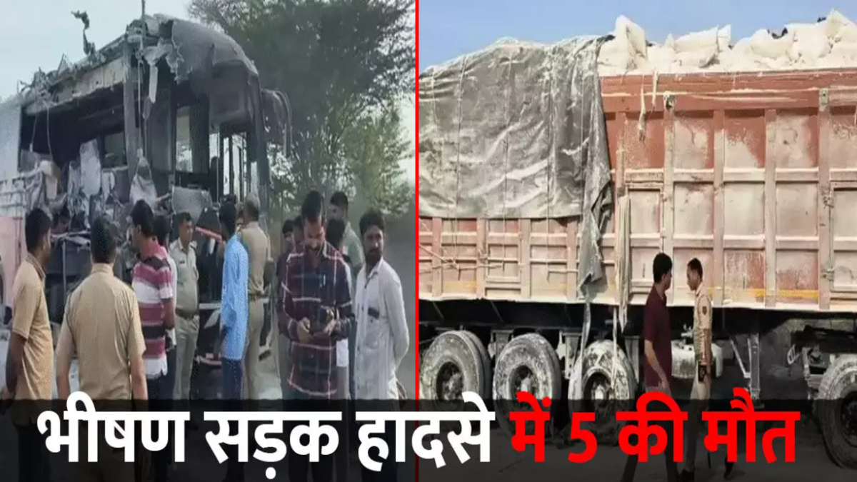 हनुमानगढ़ (राजस्थान): राजस्थान के हनुमानगढ़ जिले में मंगलवार सुबह एक हृदय विदारक सड़क हादसा सामने आया है। रावतसर थाना क्षेत्र के अंतर्गत मेगा हाईवे पर बरमसर गांव के पास एक निजी स्लीपर बस और ट्रेलर ट्रक के बीच आमने-सामने की जोरदार टक्कर हो गई। इस भीषण दुर्घटना में बस सवार 5 यात्रियों की मौके पर ही मौत हो गई, जबकि 12 से ज्यादा लोग गंभीर रूप से घायल हैं।