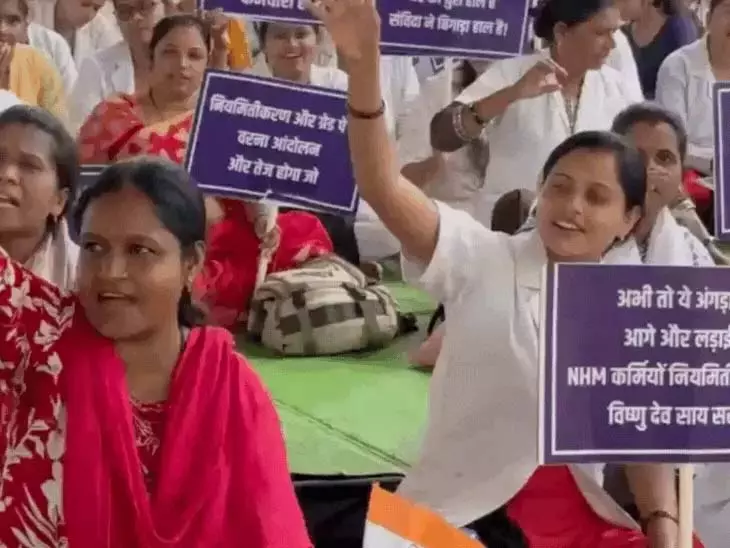 NHM contract workers strike सूरजपुर/जांजगीर। राष्ट्रीय स्वास्थ्य मिशन (NHM) के संविदा कर्मचारियों की हड़ताल को एक महीना पूरा हो गया है। सरकार द्वारा 16 सितंबर तक काम पर लौटने का अंतिम अल्टीमेटम दिए जाने के बावजूद कर्मचारियों ने हड़ताल जारी रखी। इसके बाद सरकार ने बड़ा एक्शन लेते हुए बुधवार को सूरजपुर जिले के 594 कर्मचारियों की सेवा समाप्त कर दी। इससे पहले बलौदाबाजार के 160 से अधिक और कोरबा के लगभग 21 कर्मचारियों को भी नौकरी से हटा दिया गया था।