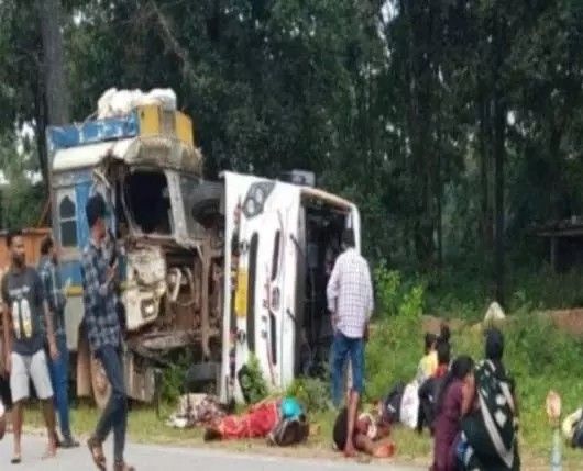 बीजापुर (छत्तीसगढ़): जिले में बुधवार दोपहर नेशनल हाइवे 63 पर एक बड़ा सड़क हादसा हो गया। भैरमगढ़ और बरदेला के बीच एक अनियंत्रित ट्रक ने यात्री बस को इतनी जोरदार टक्कर मारी कि बस सड़क किनारे जाकर पलट गई। इस दर्दनाक हादसे में एक दर्जन से अधिक यात्री घायल हो गए हैं।